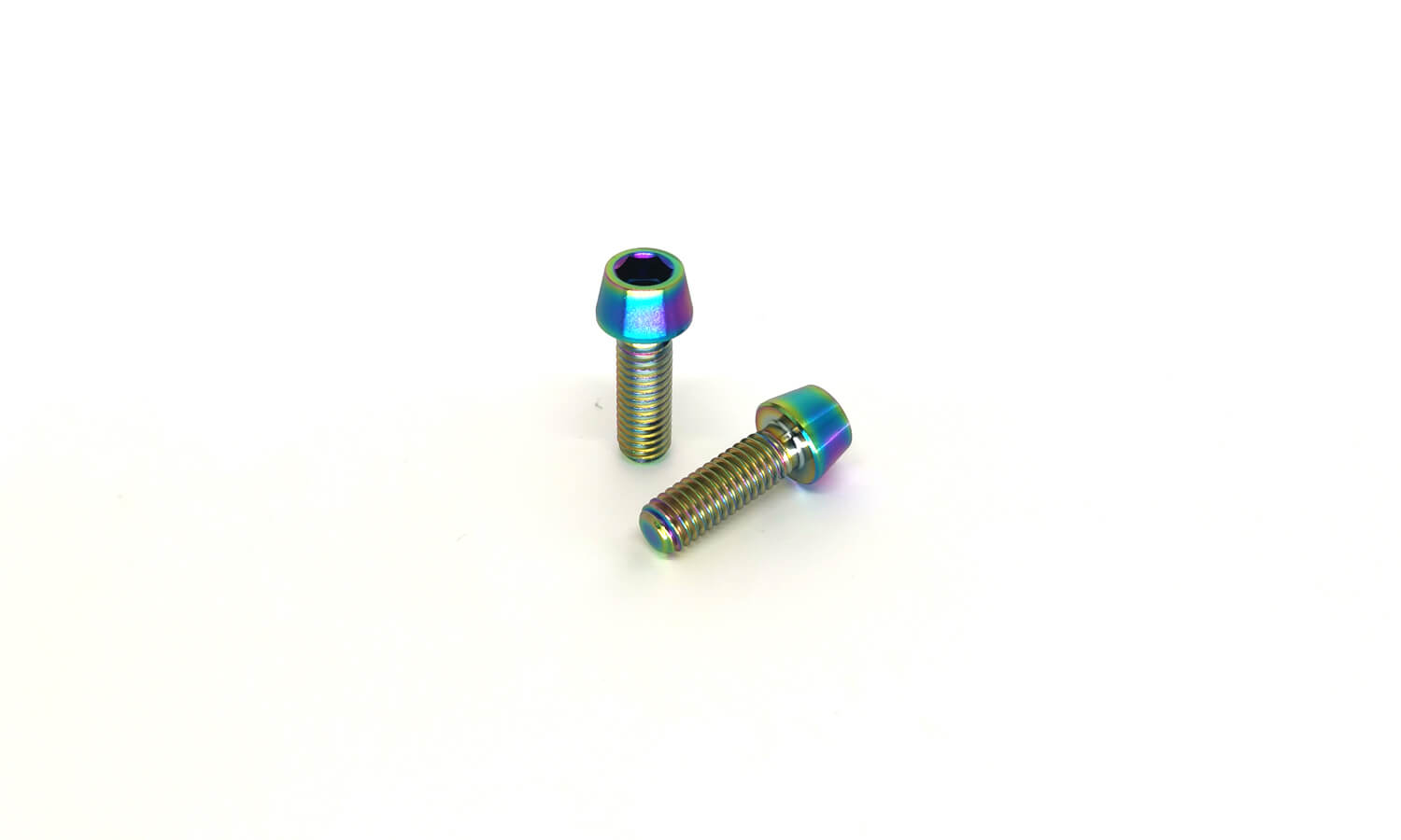 Each of these premium bolts are masterfully machined from lightweight and strong grade 5 titanium. As an alternative to steel bolts, titanium bolts are highly corrosion-resistant, 50% lighter, and suitable for use even on high-stress points such as stem faceplates and saddle rail clamps. The black versions feature a PVD (Physical Vapor Deposition) coating, making each bolt highly resistant to abrasion and corrosion. The color effect on the Rainbow bolts is achieved through heat treatment to allow for unique and striking bicycle color-tuning.